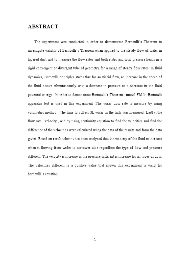 Bernoulli's Theorem Lab Report